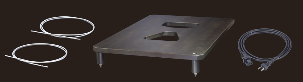 Three spikes ground both the main body and the amplifier container for a total of six spikes in the M-3. While these two components are completely physically separate, the power supply line from the power supply transformer has been shortened to eliminate any negative impacts as a result of vibrations and leakage from the transformer. This truly ideal construction results in an incredulous sound quality that can be experienced by attaching or removing the transportation screw. And of course, the audio board, AC adapter, speaker terminals, input terminals, and base plate are all non-rigid parts.